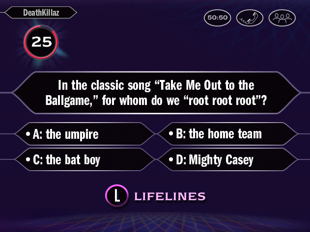 [ Cue 'Who Wants To Be A Millionaire' music ]