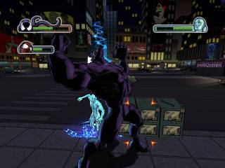 Most of this, of course, pertains to Spider-Man. Playing Venom is a bit different. Where Spider-Man is about quick attacks and grace, Venom is all about breaking things, brute force, and getting the job done as quickly as possible. Instead of webswinging, Venom can leap high into the air to cover ground quickly. The closest comparison I can come up with is that playing Venom is a lot like playing the Hulk: you're out for maximum property damage. Venom's constantly losing health (it's plot-related! really!), so you have to seek out people and drain them of life to replenish yours. It adds a bit of depth to the game, which is always a good thing.